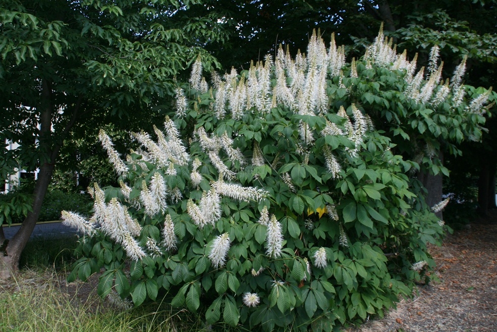 Aesculus parviflora ist ein tropisch wirkender Strauch mit dekorativen Laubblättern und Blütenständen. Die Strauchkastanie benötigt ausreichend Platz, da sie bis zu 10 m im Durchmesser sich ausbreiten kann, einen sonnigen Platz und ist ansonsten anspruchslos.