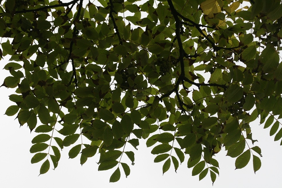 Die Bäume wachsen aufrecht, mit meist 1 Stamm und oft schon in den ersten Metern beginnender Verzweigung. Die Borke ist graubraun, tief längsrissig und bei älteren Bäumen korkig. Die Blätter sind gestielt, 25–40 cm lang, 1-fach unpaarig gefiedert mit 7–13 eiförmigen bis eiförmig-lanzettlichen, 6–12 cm langen und 2,5–4,5 cm breiten Fiedern.