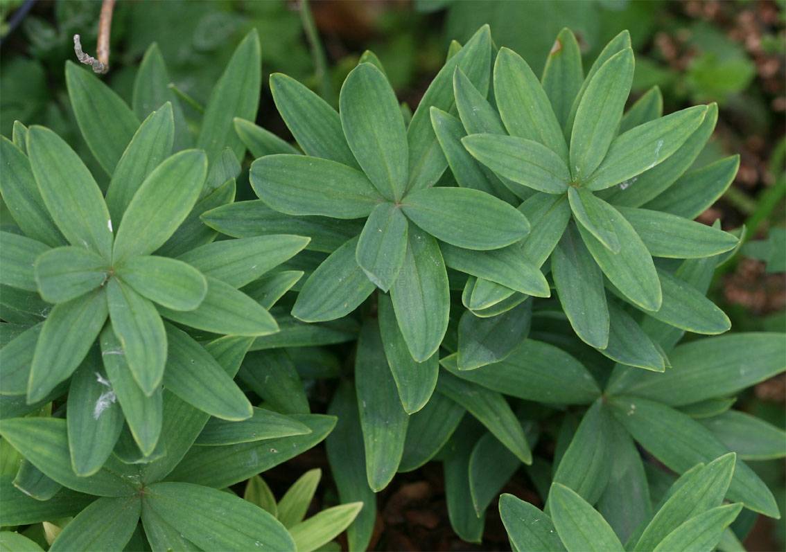 Die Pflanzen sind sommergrün und haben ein fleischiges, dickes, sich verzweigendes Rhizom, aus dem aufrechte bis kletternde, kahle, 30–80 cm hohe, grüne oder manchmal lilafarben gefleckte Stängel entspringen. Die Blätter stehen in Quirlen zu 3–4 oder gelegentlich gegenständig, sind sitzend, linear bis lanzettlich, bläulich-grün, kahl, 5–11 cm lang und 0,5–1,6 cm breit, ledrig und unterseits bereift.