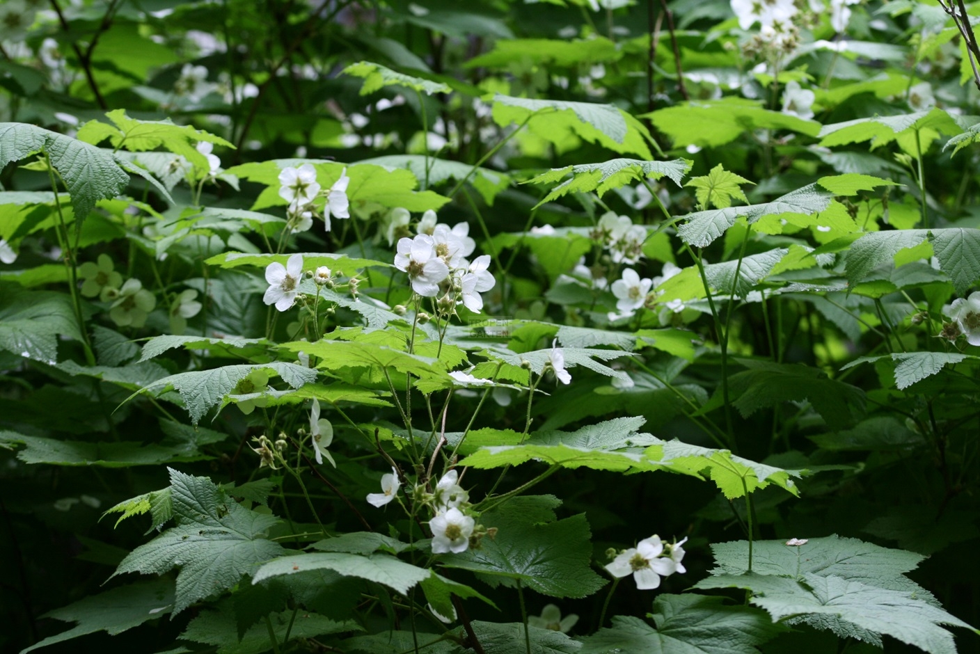 Nutka-Himbeere, Weiße Zimthimbeere, Rosaceae - Rosengewächse
