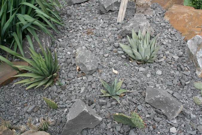Nicht mit Sicherheit erwartet werden konnte allerdings, dass die große und ohne Wurzeln erst im Herbst vergangenen Jahres gepflanzte und ohne jeden Regenschutz gebliebene Yucca rostrata im Kreisel mit geringfügigen Schäden überlebt hat und im Laufe dieses Sommers sogar erste neue Blätter in der Mitte des Blattschopfes produzierte. Auch die ebenfalls erst im vergangenen Jahr im neu angelegten Sukkulentenbeet ohne Regenschutz gepflanzten Agave utahensis, Agave havardiana und Agave neomexicana überlebten ohne erkennbare Schäden ebenso wie sämtliche Opuntien (Feigenkakteen), von denen dieses Jahr sogar eine erstmals blühte.