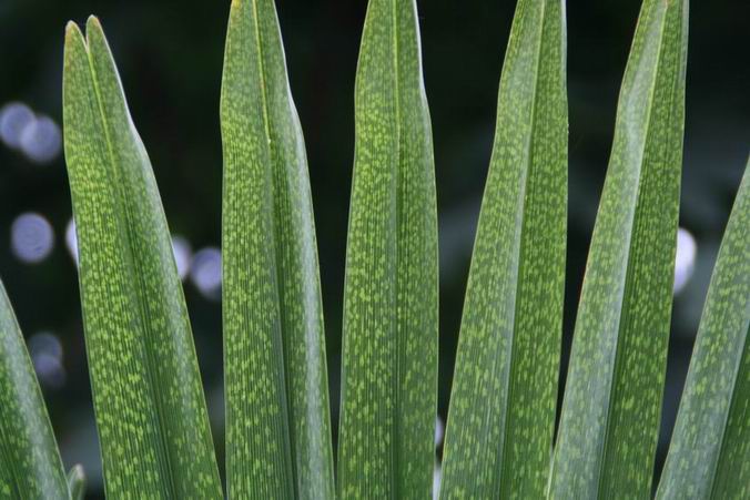 Chlorose an einzelnen Kammern des Trachycarpus fortunei Blattes als Zeichen der WInterschädigung