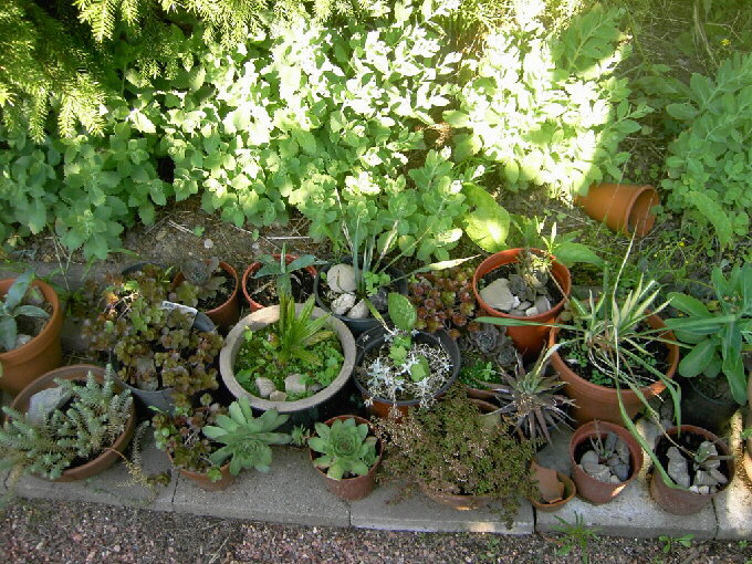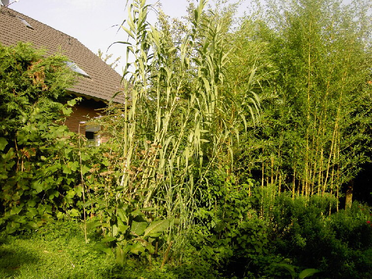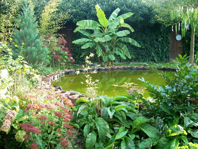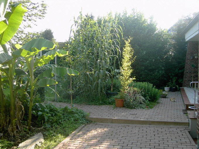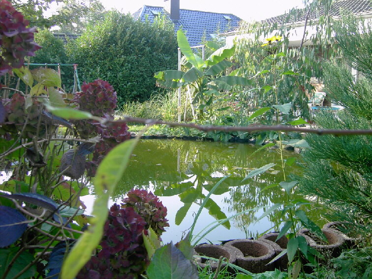 | Karlheinz Mainz Ein exotischer Naturgarten in der Jülicher Börde mit vielen Exoten wie beispielsweise Musa basjoo, Hanfpalme, Zimmeraralie, Chilenisches Pfahlrohr, Bubikopf und weiteres. Schwerpunkte sind Bambus und Beerenobstraritäten (Japanische Weinbeere, Finnische Mesivadelma, Maibeere, Lonicera kamtschatica, Wein Booskoops Glory, Actinidia arguta 'Maki', Mandelbaum 'Perle der Weinstraße', teilweise Dschungelcharakter durch großblätterige Pflanzen wie Riesen-Alant, Herkulesstaude, Comfrey. Zudem liegt mir besonders die Förderung des heimischen Fadenmolches am Herzen. Durch Mulchen versuche ich das Bodenleben zu fördern und Versteckplätze zu schaffen. Drei verschieden große Teiche bieten Laichmöglichkeiten. Ferner eine Futtertierzucht und diverse kleine Gefäße zur Aufzucht von Jungmolchen. Bambusbestand: Seit 1988 Phyllostachys nigra boryana Seit 1996 Phyllostachys vivax aureocaulis Bashania fargesia Indocalamus tesselatus Seit 1998 Phyllostachys aureosulcata f. spectabilis Seit 2000 Hibanobambusa transquillans f. shiroshima Seit 2004 Phyllostachys viridiglaucescens