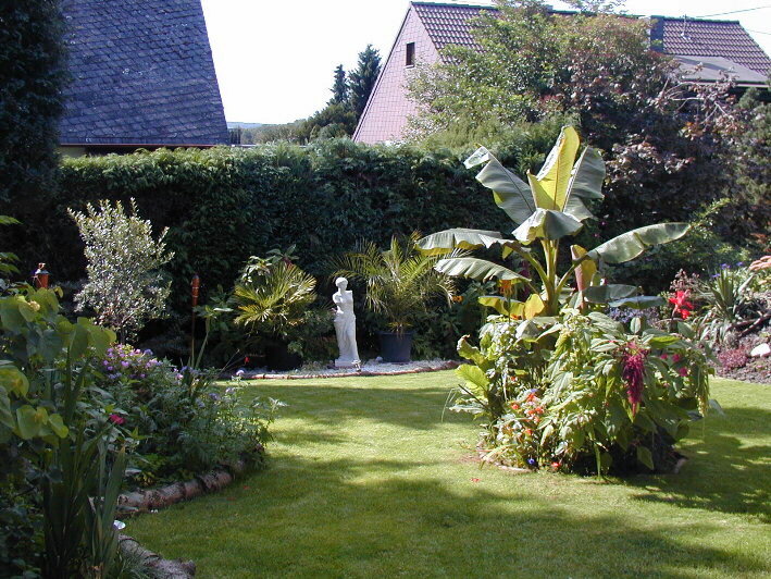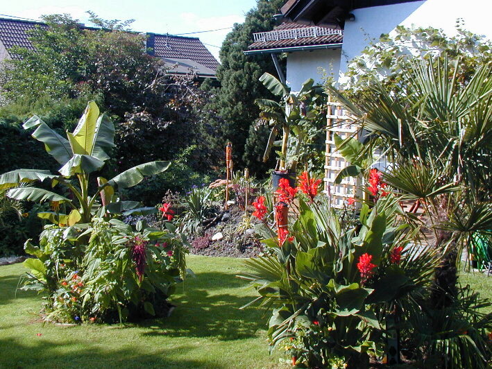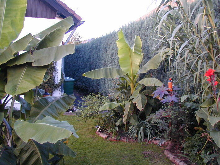 Nippgen Seit 2005 angelegter und im Aufbau befindlicher Exotengarten im Rhein-Westerwaldkreis auf 600 qm Areal. Der als Exotengarten angelegte hintere Gartenteil liegt auf einer Südwesthanglage auf 350 m über NN. Die Entfernung zum Rheintal beträgt etwa 6 km. Trotz der Höhe über dem Meeresspiegel ist von einer USDA Zone 7b bis 8a auszugehen. Neben einer Trachycarpus fortunei Gruppe befinden sich Musa basjoo, M. sikkimensis, M. thompsonii, M. itinerans und M. velutina im Garten. Abgerundet wird das Bild durch Gunnera manicata, Bambusarten, Arundo donax, Hibiscusarten, Ficus carica, Albizzia, Cercis silliquastrum, Magnolia grandiflora und vieles mehr.