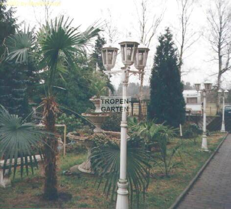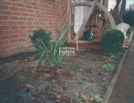 Tucholzki Leezen, bei Bad Segeberg in Norddeutschland. Es handelt sich um einen relativ großen Garten mit einer Reihe von Exoten wie Palmen, Citrus, Yucca, Baumfarnen und Bananen. Pierre hat 1996 mit Palmen angefangen und interessiert sich seit 1999 für frei auspflanzbare Exoten. Auf den Bildern ist Trachycarpus fortunei (li.) und Rhapidophyllum hystrix (re.) in seinem Garten zu erkennen.