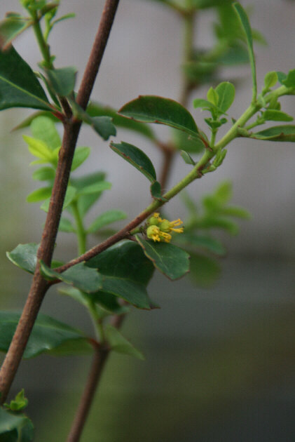 Azara dentata ist ein immergrüner Busch aus Chile. Sie ist eine Flacourtiaceae und blüht mit hübschen gelben Blüten, die entfernt an Akazien erinnern. Der Name rührt von den gezahnten Blatträndern her. Über die Endgröße liegen in Mitteleuropa bisher keine Erfahrungen vor, aus englischer Literatur ist 2,5 bis 3 m zu entnehmen. Die Blütezeit liegt nach Erfahrungen aus England im Frühsommer. Zur Winterhärte lässt sich ebenfalls noch nicht viel sagen, wahrscheinlich ist sie nur für wintermilde Regionen geeignet. Literaturangaben schwanken von Zone 8 bis 6, wobei letztere aus dem kontinentalen Klima Nordamerikas stammen. Ist Ihnen das Auspflanzen zu riskant, halten Sie A. dentata als Kübelpflanze mit leicht saurem Substrat und überwintern sie im kühlen Gewächshaus.