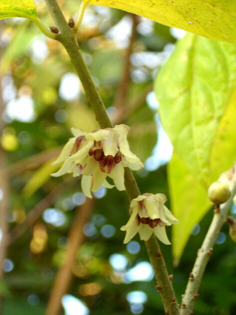 Chimonanthus praecox ist ein laubabwerfender, echter Winterblüher bis 4 m Höhe, Herkunftsland China. Die Blüten erscheinen zwischen Dezember und März, je nach Witterung, und bringen erste Farbtupfer in das junge Jahr. Die gelblichen, stark duftenden Blüten sind für die Gestaltung des Exotengartens sehr wertvoll. In rauhen Lagen ist ein geschützter Standort sinnvoll, da starke Fröste das junge Holz zurückfrieren lassen.