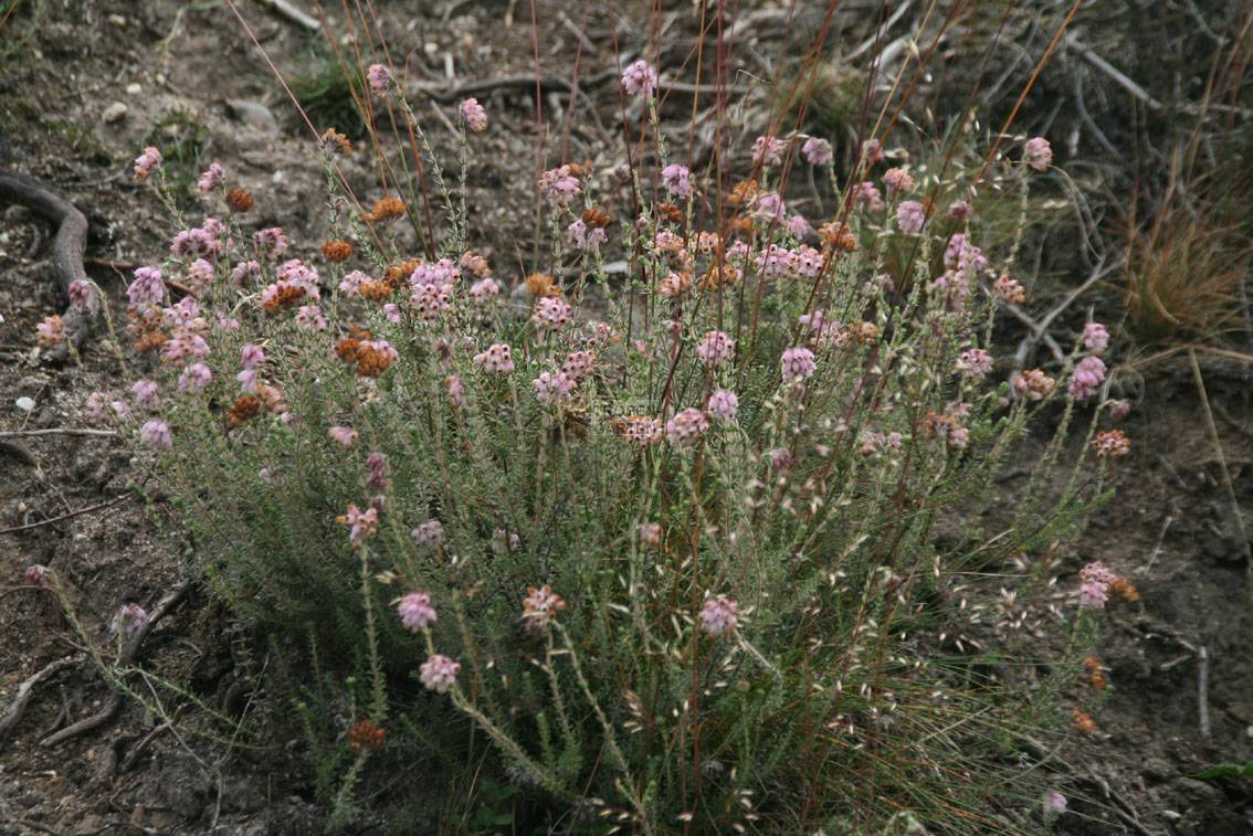 Die Pflanzen sind immergrün, aufrecht wachsend und am Grunde verzweigt. Die Laubblätter sind linear, bläulich-grau, steifhaarig oder drüsig bewimpert. Die Blütenstände stehen kopfig an den Enden der Sprossachsen und sind nickend. Die Krone ist rosa, mit darin verborgenen Staubblättern. Siehe auch Gattung Erica L.