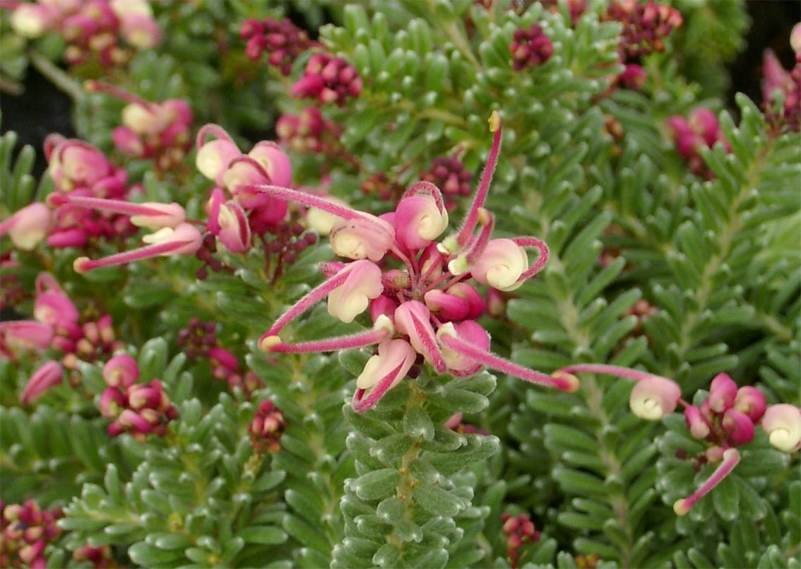 Grevillea lanigera A. Cunn. ex R. Br. ist eine niedrig wachsende Art mit heide-ähnlichem Blatt und kräftiger, roter Blüte, oft mit gelblicher Farbnuance. Die Frosttoleranz dürfte etwa tiefer als –8 °C liegen. Kübelhaltung.