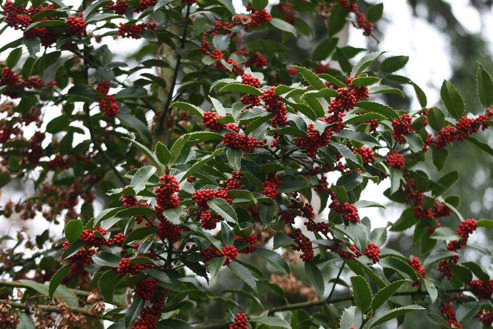 Abb. 5 Reichlich Fruchtbehang von Ilex ×koehneana im Park der Insel Hombroich, Neuss, 06.12.2025