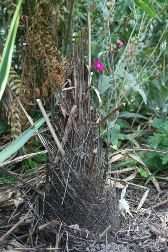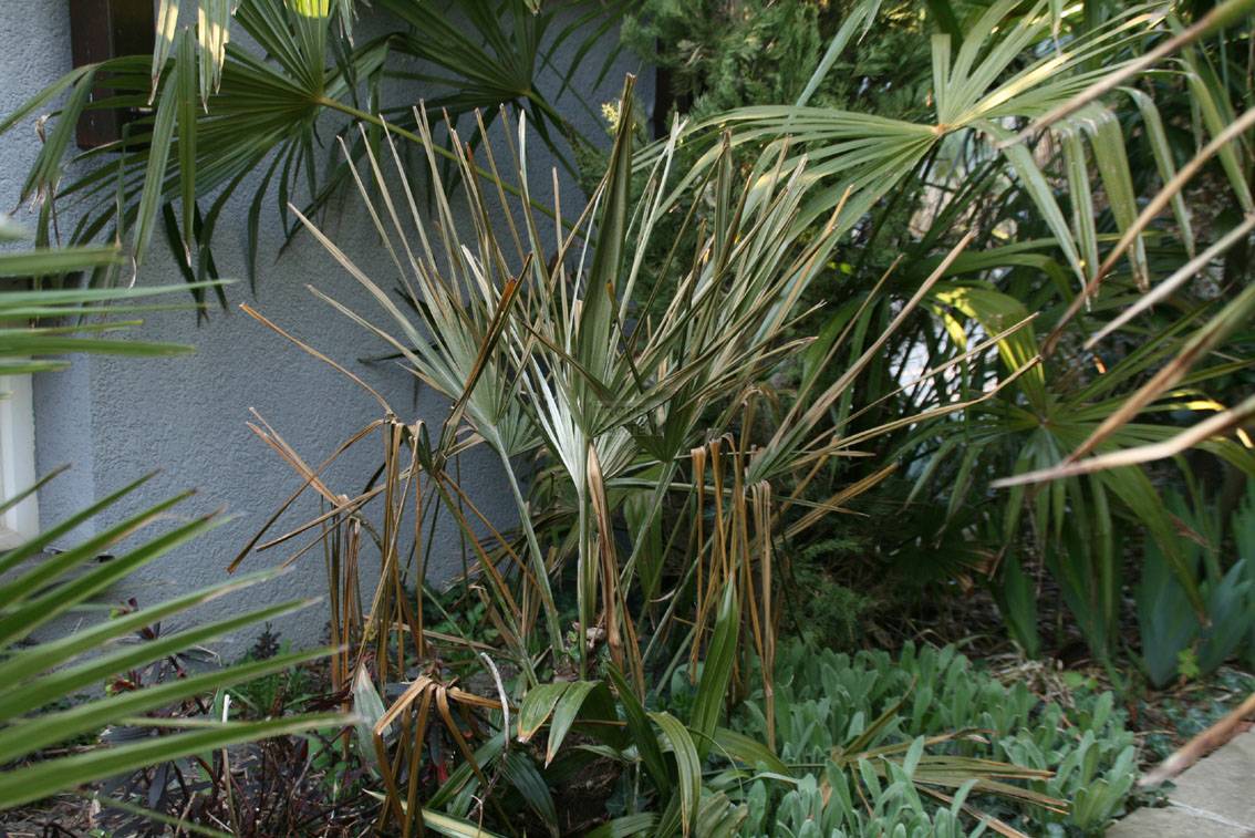 Für die Freilandkultur sollte man schon etwas größere Pflanzen wählen, die Schößlinge gebildet haben. Nach manchen Wintern sterben gelegentlich einzelne Stämme ab - besonders die großen und kräftigen neigen dazu. Hat die Pflanze keine Schößlinge, ist sie nach so einer Schädigung in der Regel abgestorben. Durch die Schößlinge ist hingegen das Überleben gesichert und man kann sich auch zukünftig an einer erfolgreich angebauten Nadelpalme erfreuen. Abgestorbene Stämme müssen nicht entfernt werden.