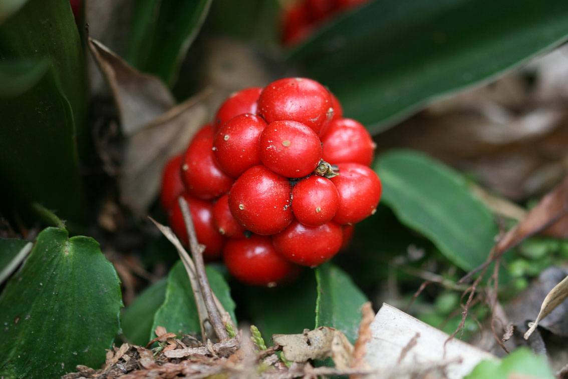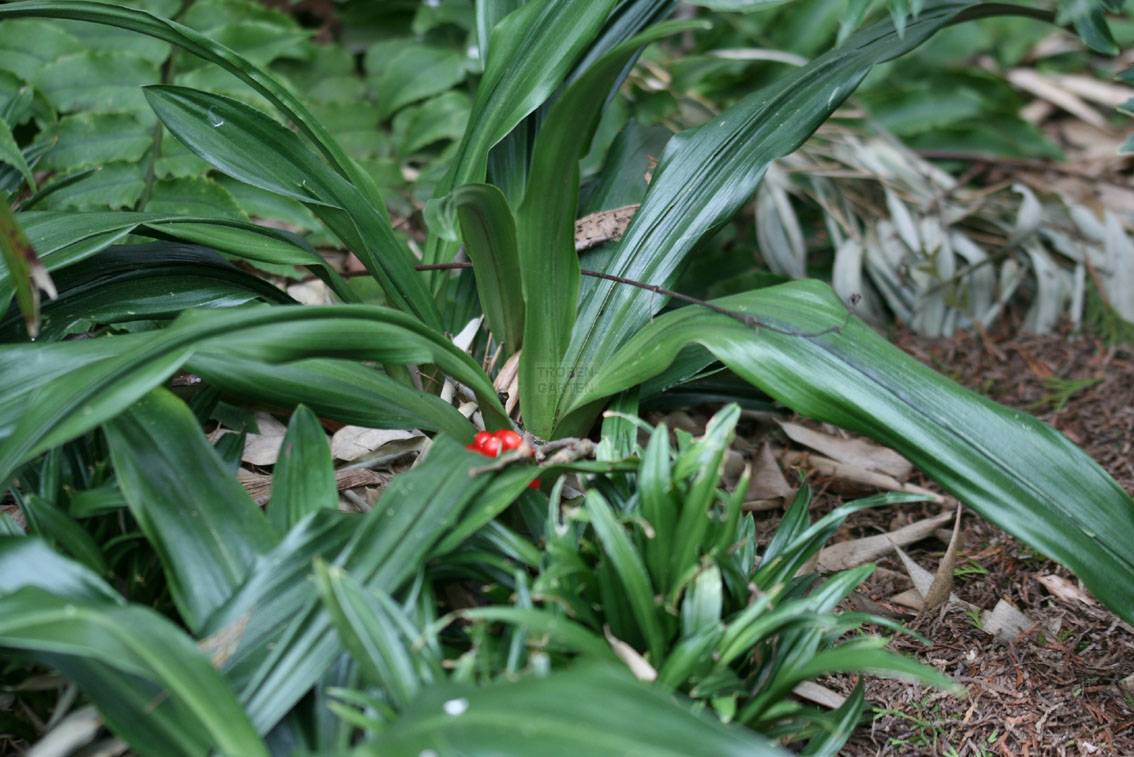Es sind immergrüne Pflanzen mit kräftigem Rhizom und faserigen Wurzeln. Die Blätter sind bis 45 cm lang, stehen in basaler Rosette, sind dick papierartig mit zugespitzem Ende und haben einen kräftigen, bis 10 cm langen Stiel. Die Blüten erscheinen im Frühling bis Frühsommer, stehen an einem kurzen, gestauchten, bis 4 cm langen, vielblütigen Blütenstand. Die Blütenhülle ist gelblich. Zum Herbst hin bilden sich dekorative, kugelige, leuchtend rote, bis 8 mm im Durchmesser große Beerenfrüchte.