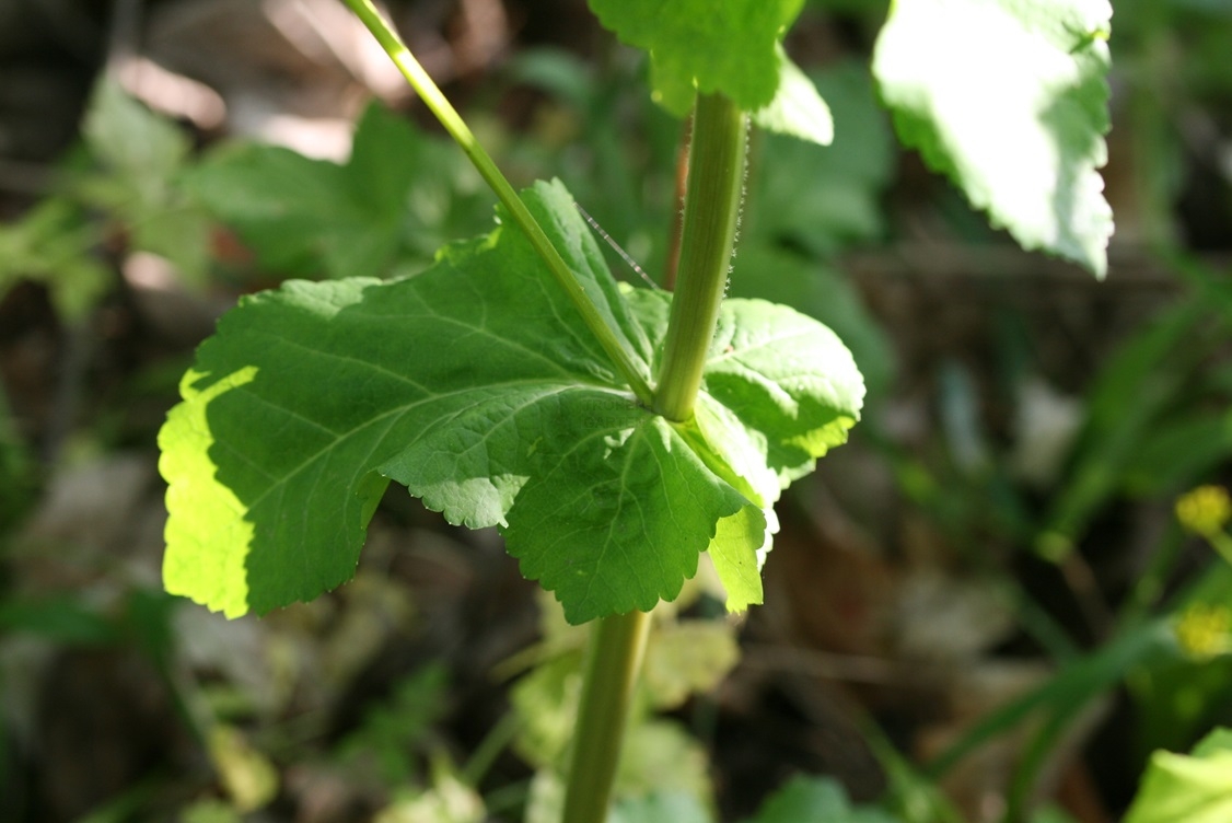 Die Pflanzen bilden eine rübenförmige Knolle. Die Stängel sind aufrecht, besonders im oberen Bereich verzweigt und oberwärts mit 2–4 zottig bewimperten Längsfügeln. Die Grundblätter sind doppelt 3-zählig. Die Stängelblätter sind stängelumfassend, ungeteilt, besonders im oberen Bereich gelbgrün, randständig gekerbt.