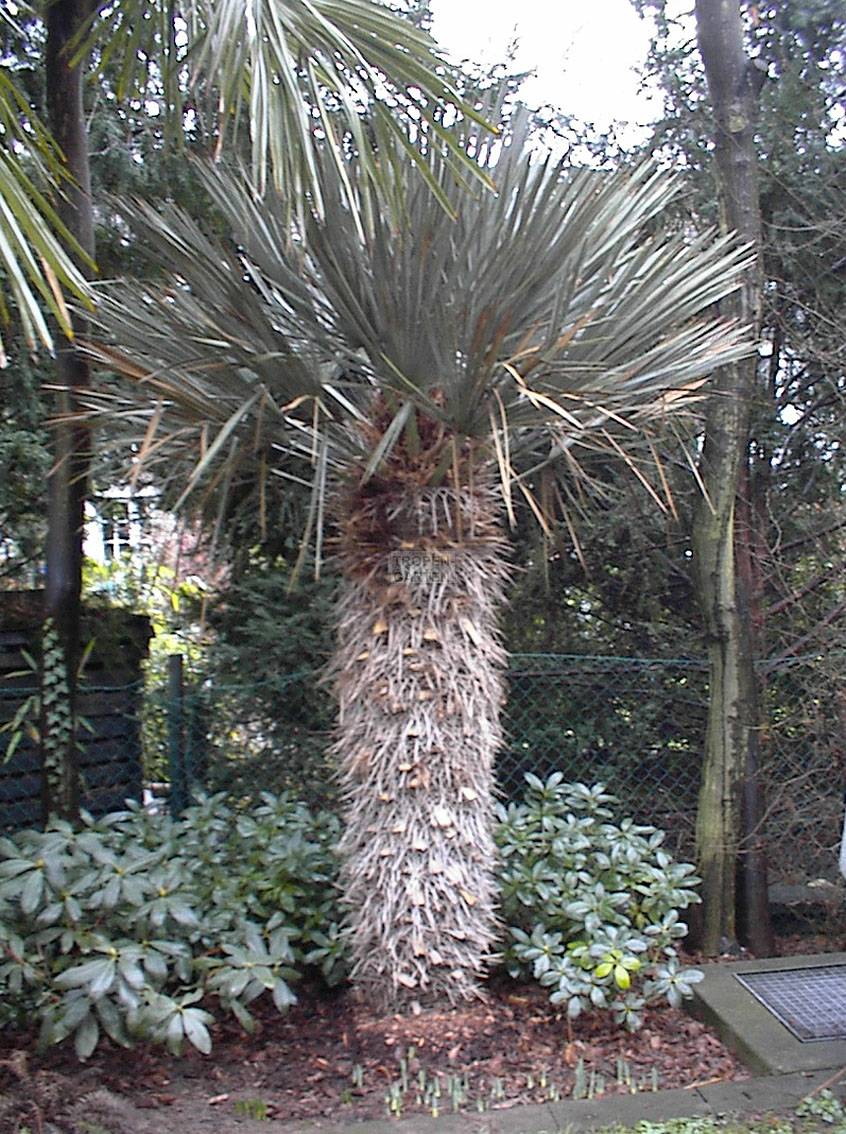 Trithrinax campestris ist wahrlich keine schnellwachsende Palme, dafür hat sie von der Exotik her am meisten zu bieten: Metallisch glänzende Blätter, bizarres Wachstum, lange "Nadeln" an fast allen Teilen der Pflanze und ein beinahe "wolliger" Stamm mit Dolchen, die denen der Poncirus trifoliata (L.) Raf. in nichts nachstehen und gerne mal die Weichteile der Gartenbesucher perforieren. Suchen Sie also eine Herausforderung, wählen Sie die Nadelpalme.