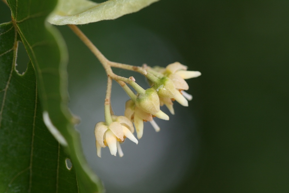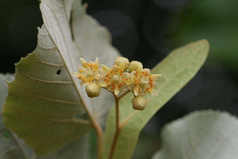 Die Blütenstände sind 5–10-blütige, sternhaarige Trugdolden, deren Blütenstandsstiele mit einem flaumig behaarten Tragblatt verwachsen sind. Die Einzelblüten sind 5-zählig mit hellgelben Kronblättern und cremefarbenen Kelchblättern.