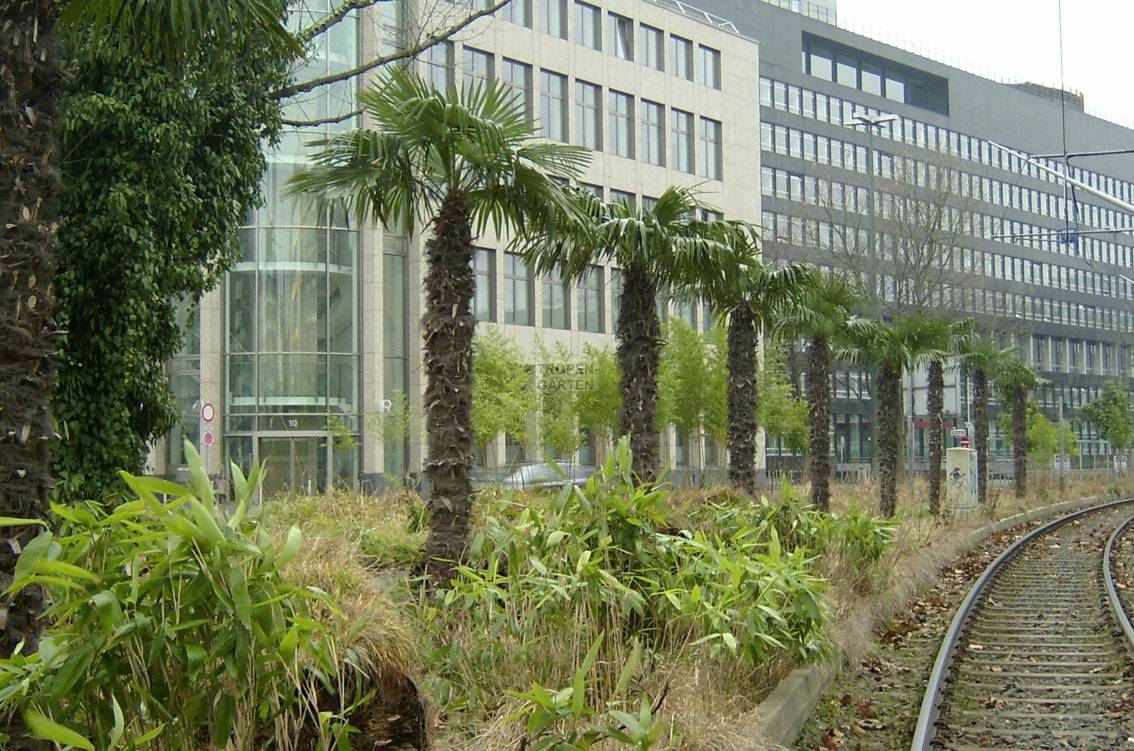 Als Neuanlage im Frühjahr 2002 entstand gegenüber der Börse eine eindrucksvolle Freilandpflanzung von Trachycarpus fortunei, 22.01.2006: