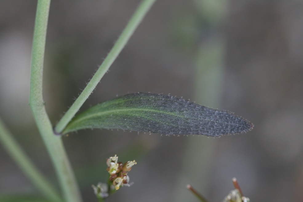 Es sind aufrecht wachsende Pflanzen mit wenig verzweigten, unten spärlich behaarten, oben kahlen, wenig beblätterten Stängeln. Die Grundblätter sind rosettig, ganzrandig oder schwach gezähnt, behaart mit Gabelhaaren. Die Stängelblätter sind ganzrandig, lanzettlich, sitzend und am Grund verschmälert.