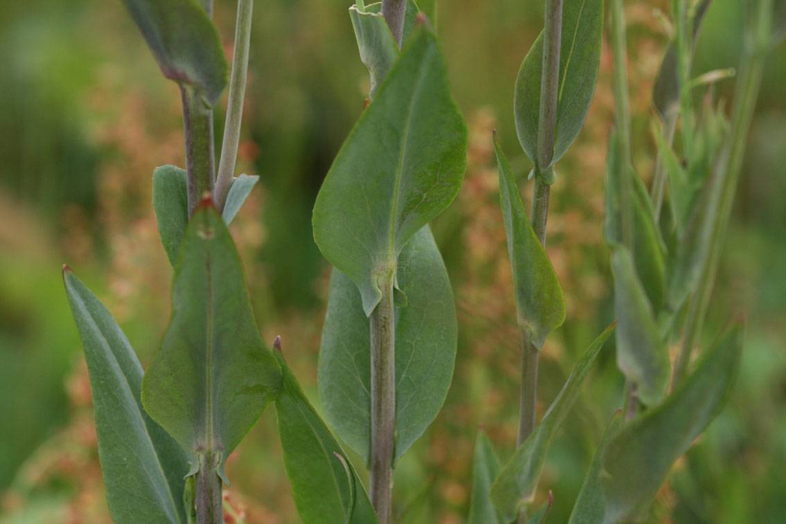 Es sind aufrecht wachsende Pflanzen, die in den unteren Partien behaart und in den oberen kahl sind. Die Stängel verzweigen sich meist in den oberen Partien. Die Grundblätter sind buchtig gezähnt bis leierförmig und von Sternhaaren rauh. Die Stängelblätter sind eilanzettlich bis herzpfeilförmig, bläulich grün, bereift, ganzrandig, zumeist kahl und stängelumfassend.