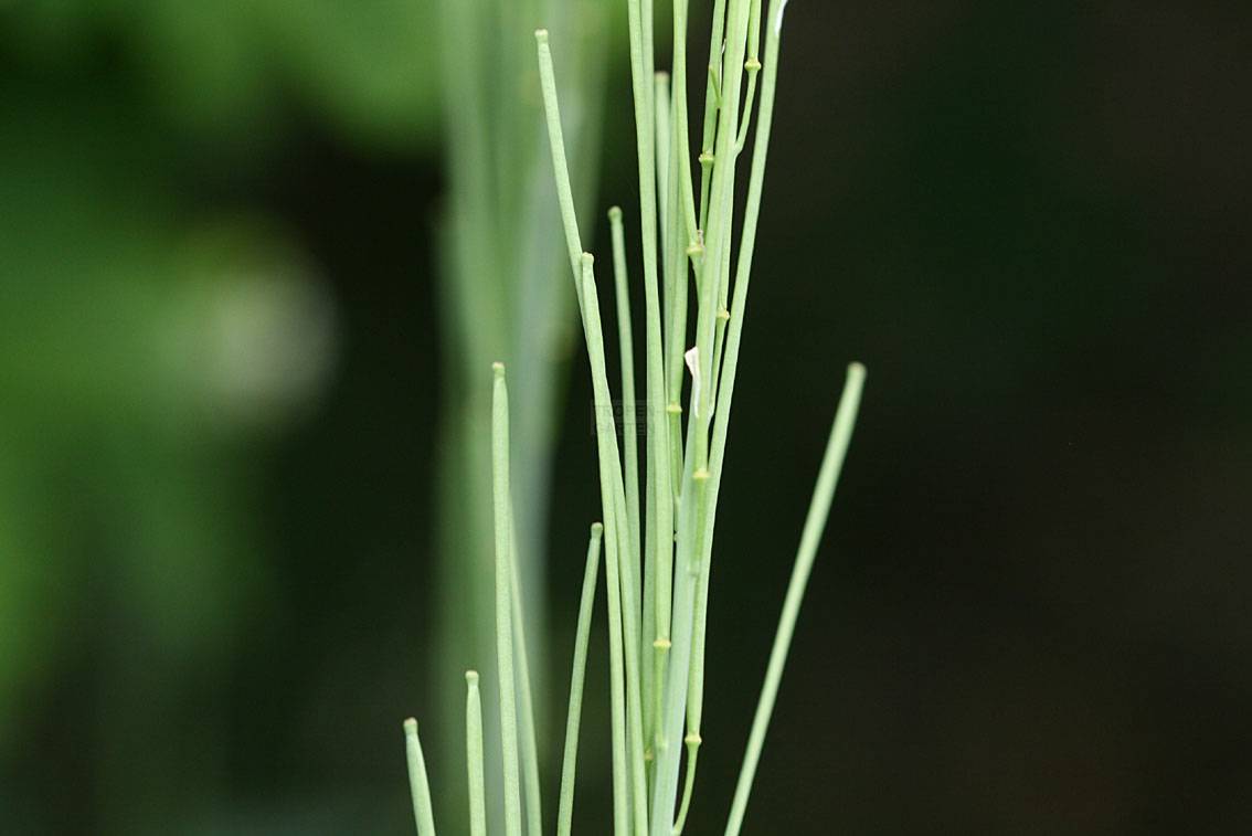 Die Blütenstände sind reichblütig. Die Kronblätter sind gelblich-weiß, 4–6 mm lang. Später bilden sich 4-kantige, 4–7 cm lange, aufrechte und dem Stängel angedrückte Schötchen.