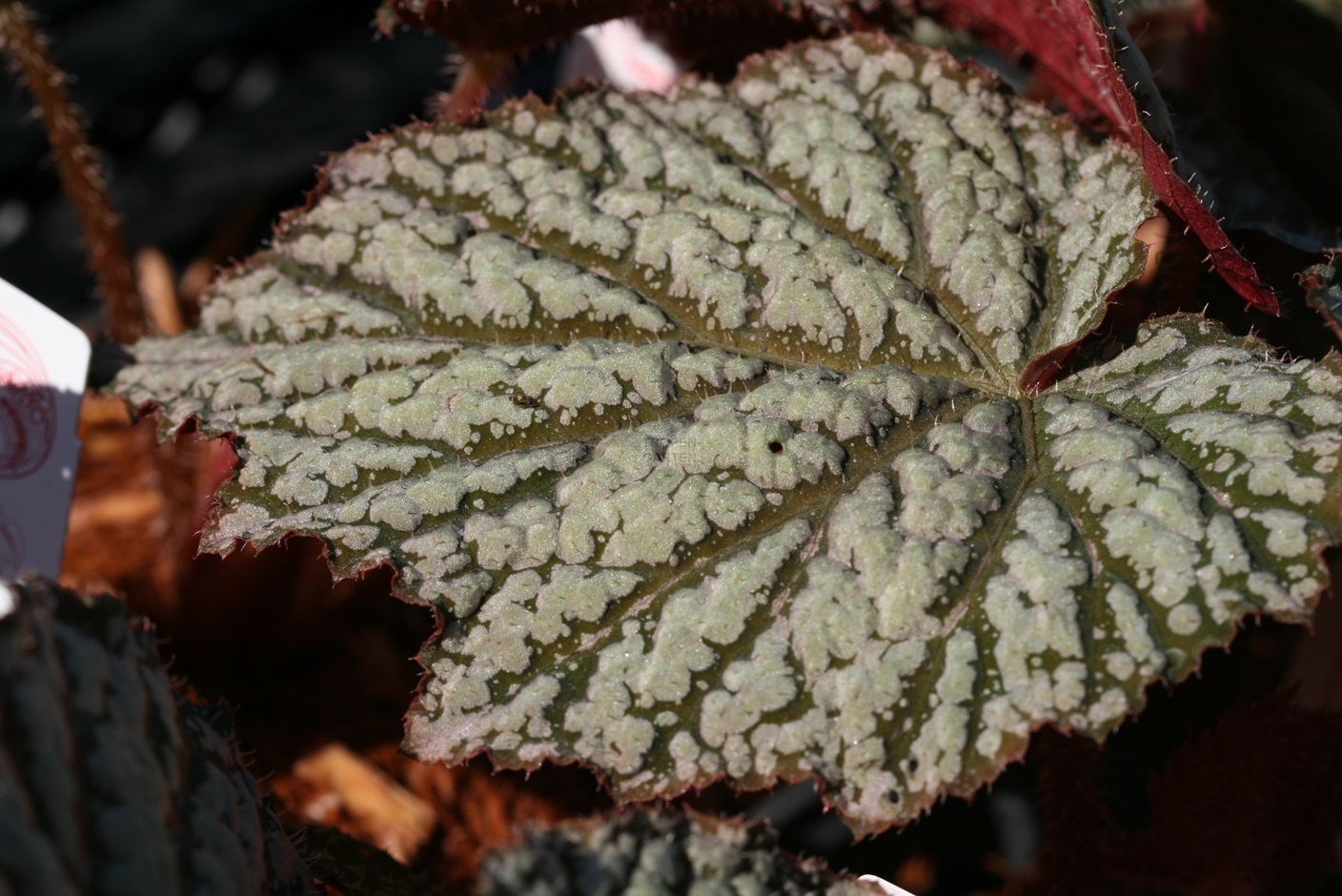 - Von nur einem bekannten Standort (2024) stammt die Malipo-Begonie, Begonia malipoensis S. H. Huang & Y. M. Shui, mit hübsch gezeichneten, großen Laubblättern, möglicherweise geeignet für Z8.