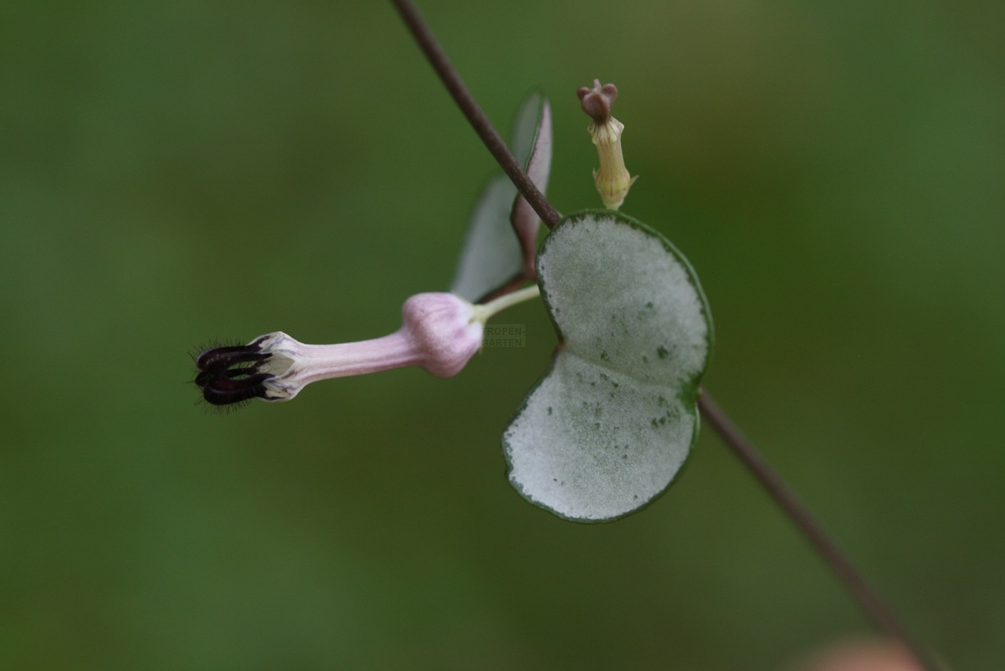 Ceropegia woodii ist eine anspruchslose Zimmerpflanze für den Halbschatten. Die Pflanzen sollten nicht nass stehen.