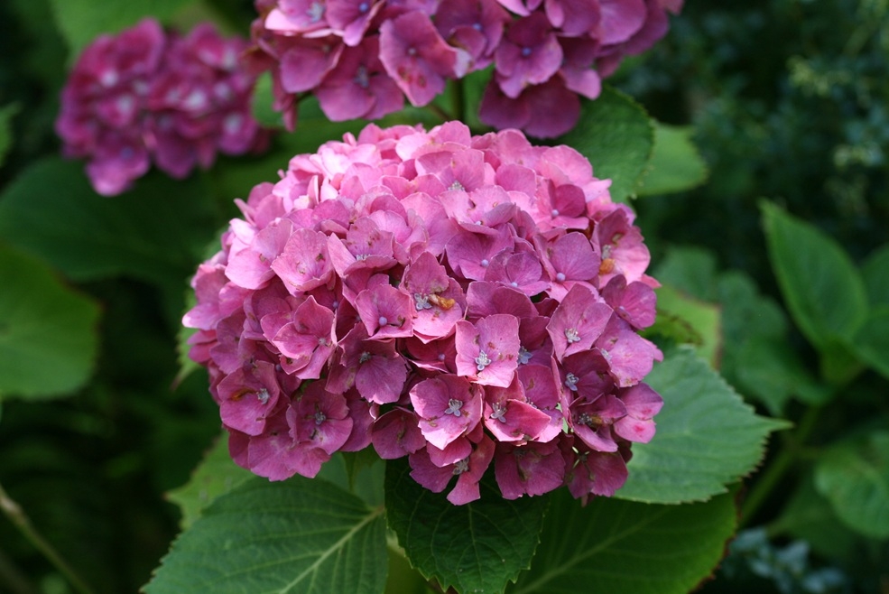 Hydrangea macrophylla ist ein dekorativer Strauch mit hübschen Blütenständen, langer Blütezeit und kompaktem Wuchs. Die Pflanzen bevorzugen einen sonnigen bis halbschattigen Standort auf nicht zu trockenen Böden. Bei sauren Böden erscheinen die Blüten blau.