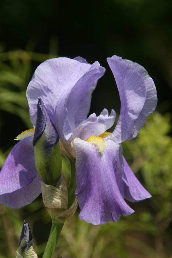 Die Pflanzen haben blaugraue, bereifte Blätter und wenig verzweigte Blütenstängel mit hell lavendelblauen, "blassen" Blüten. Auf den äußeren Perigonblättern (Perigon deshalb weil sich Kelch- und Kronblättern nicht unterscheiden lassen) befindet oberseits ein Längsstreifen dichter, "bartähnlicher" Haare -> Bartiris. Zur Blütezeit sind die Hochblätter trockenhäutig und befinden sich als gelbbräunliches, trockenes Blatt unterhalb der Blüte.