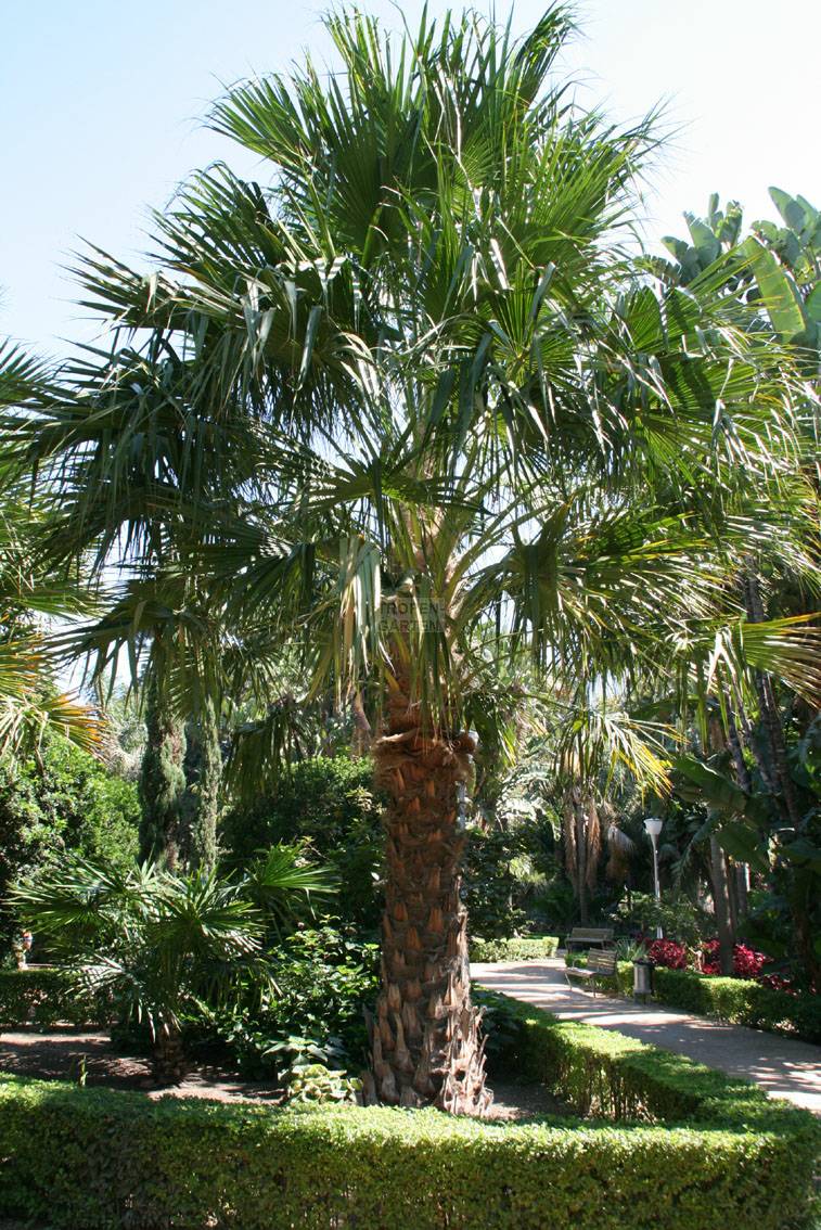 Livistona saribus (Lour.) Merr. ex A. Chev., die Taraw-Schirmpalme, stammt aus Südostasien, wo die Pflanzen im tropischen Dschungel wachsen. Eignet sich für warm gemäßigte bis tropische Klimate.
