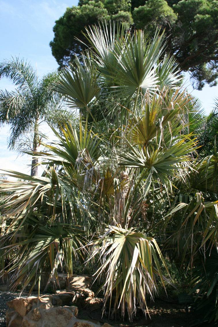 Livistona mariae ssp. rigida (Becc.) Rodd stammt aus Australien und hat blaugrüne Laubblätter, deren Segmente steif sind oder nur wenig an der Spitze herabknicken.