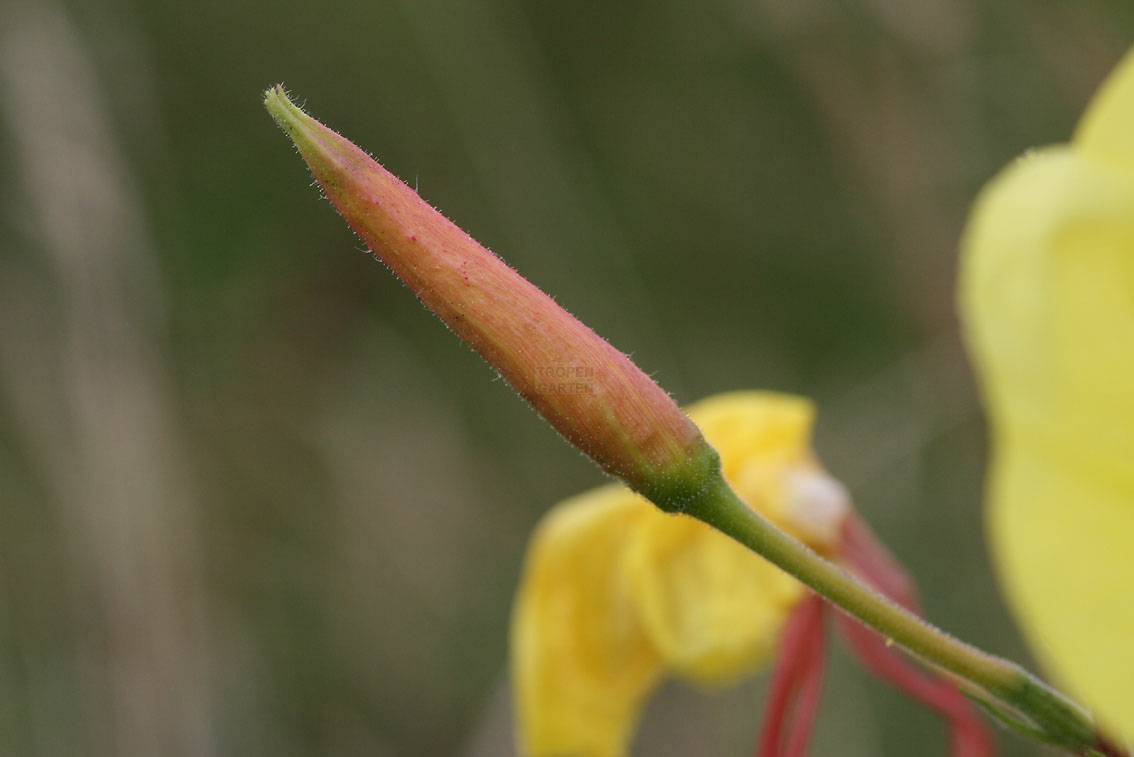 Der Blütenstand ist stark asymmetrisch. Die Blütenknospen sind gelbgrün bis gelblich, oft unten braun-rötlich. Die Kronblätter sind 12–18 mm lang, 12–16 mm breit, verkehrt-herzförmig. Die Endzipfel sind 2–6 mm lang, teilweise rotspitzig. Das Hypanthium ist im Vergleich zur Blütengröße mit 30–45 mm relativ lang. Später bilden sich 25–40 mm lange, rot punktierte oder gestreifte, dicht behaarte, spärlich drüsige Kapseln, mit stumpfen, einwärts gekrümmten, oft rötlichen Kapselzähnen. Siehe auch Oenothera L.