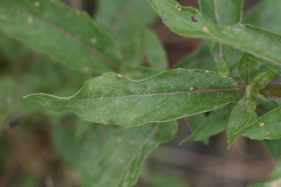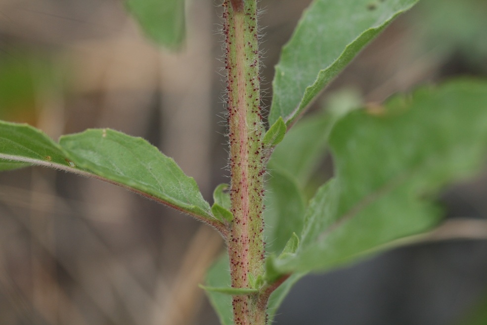 Die Art ist äußerst variabel, stark drüsig und dicht weich behaart. Die Stängel sind stark rot punktiert mit langen, auf Warzen stehenden Borstenhaaren. Die Stängelblätter sind breit lanzettlich, 15–30 cm lang, 3–5 cm breit, rotnervig, gewellt, gezähnt, oberseits meist kahl. Selten treten auch weißnervige oder schmalblättrige Formen auf.