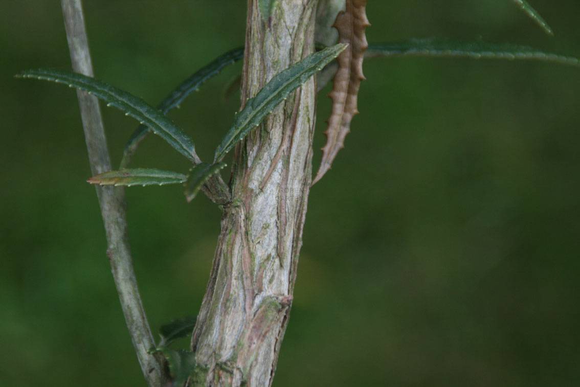 Olearia algida N. A. Wakefield stammt aus Australien und Tasmanien. Kleine Sträucher mit weißen jungen Zweigen.