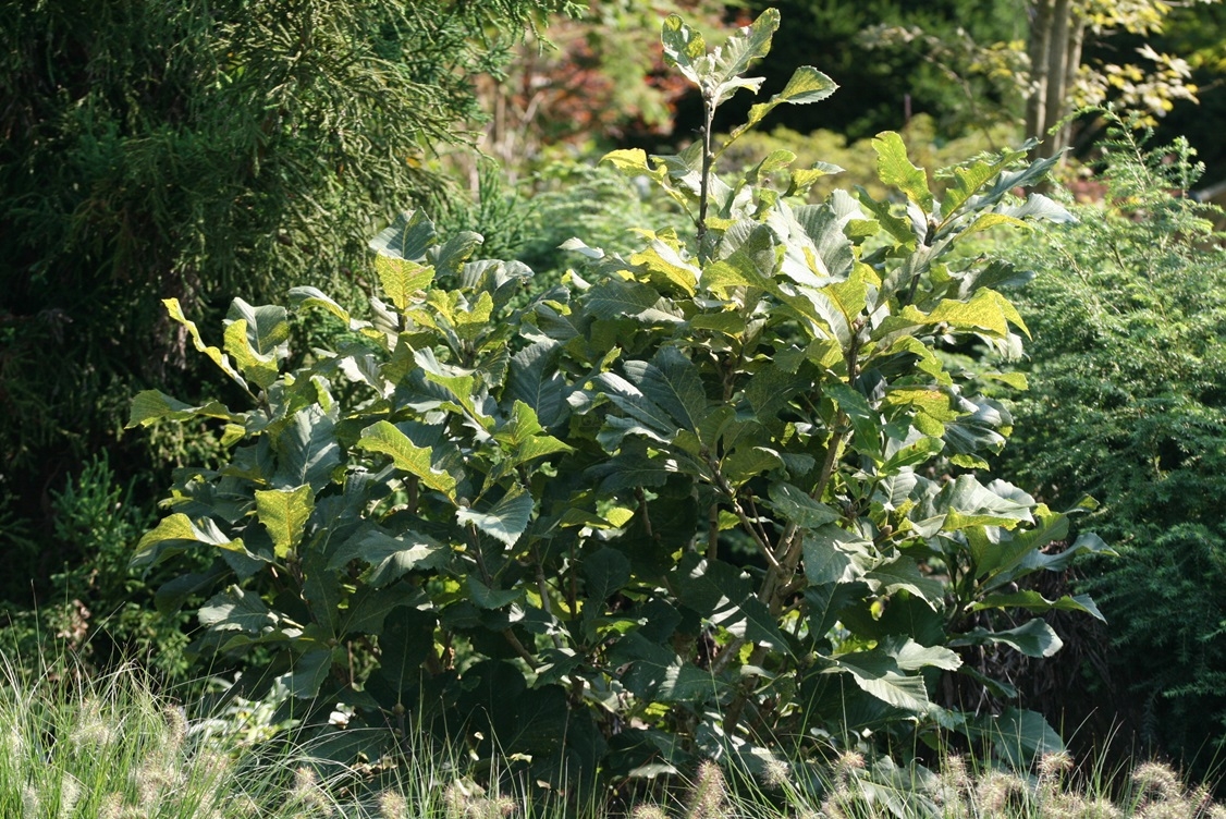 Die Armenische Eiche wird selten angebaut, dabei ist sie ein ornamentaler Strauch mit auffälligen Laubblättern und intensiv gelber Herbstfärbung.