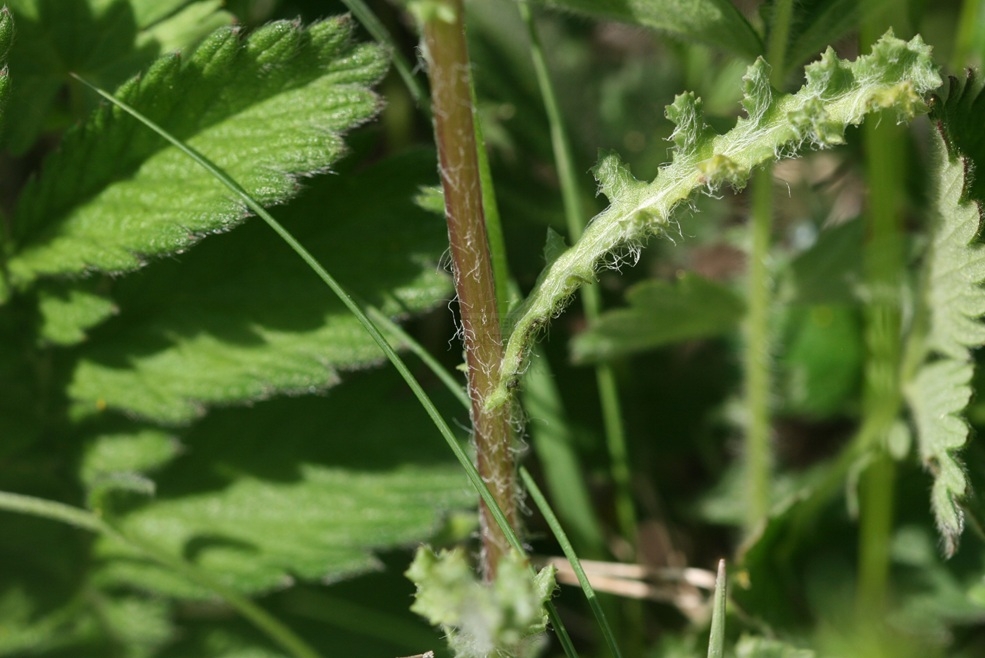 Die Pflanzen sind aufrecht und mehr oder weniger verzweigt. Die Stängel sind wollig-filzig. Die Laubblätter sind sitzend, unten gestielt, oben sitzend, beidseits spinnwebig-wollig behaart, schmal lanzettlich, fiederspaltig stumpf gezähnt mit eiförmigen Blattzipfeln.
